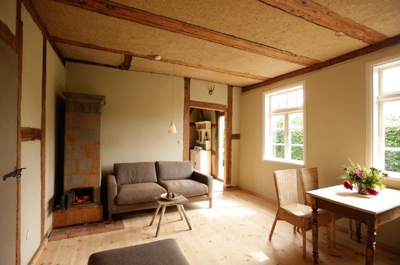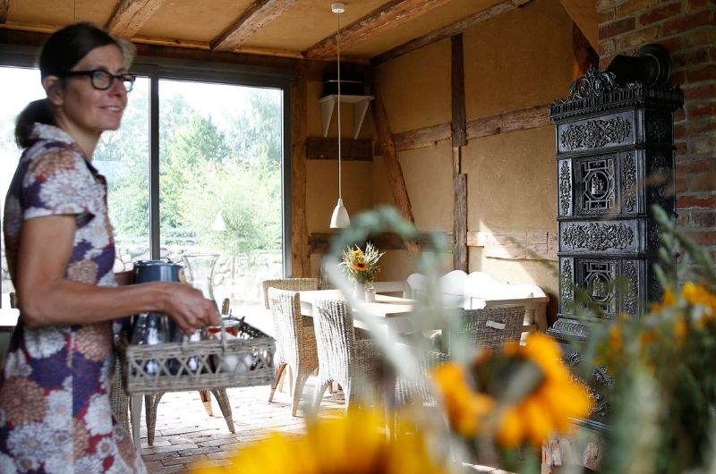 - Nachhaltige Bauweise: Das Baumaterial zur Sanierung stammt von einer alten Scheune in der Nähe, Lehmputz und upgecycelte Einrichtungsgegenstände sind Co-Urlauber.
