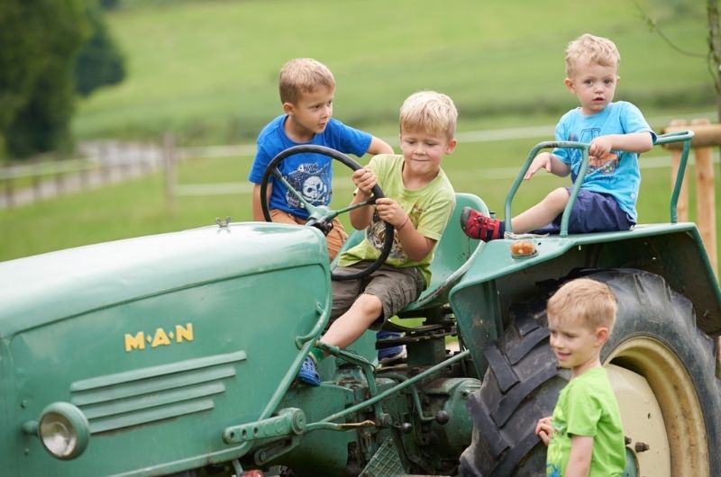 - Autofrei: Eure Kids könnt ihr entspannt auf dem Hof herumrennen lassen, da es hier weit und breit keine großen Straßen gibt. Nur ab und ab kommt mal ein Traktor vorbei, der gerne kleine (und natürlich auch große) Mitfahrer einlädt.
