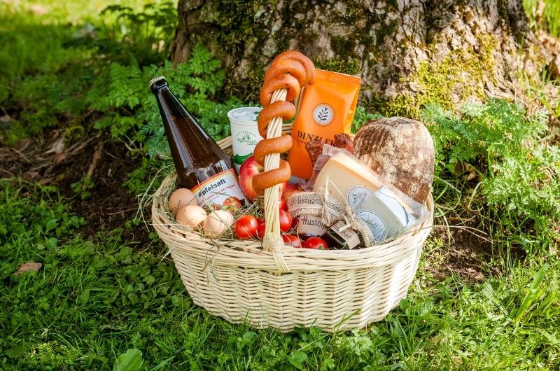 - Willkommenskorb: Duftendes Bauernbrot, Landjäger, Heumilchkäse, Honig, selbstgemachte Marmelade, frisches Obst und Gemüse,... Bei eurer Ankunft steht ein prall gefüllter Korb mit regionalen und saisonalen Spezialitäten aus dem Tölzer Land im Chalet bereit, wenn ihr diesen vorbestellt (44 €).