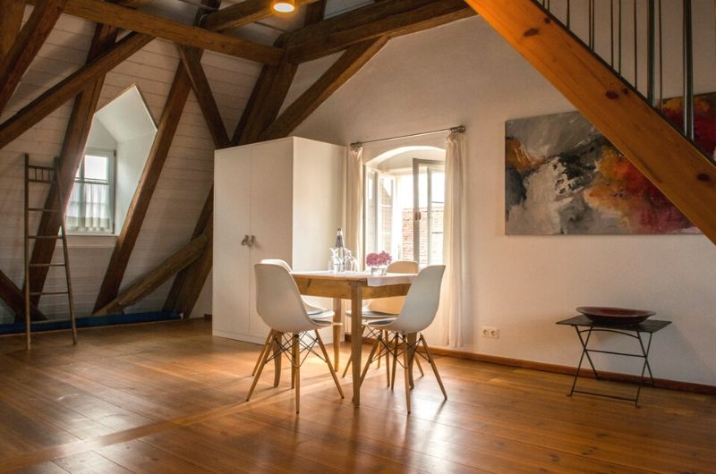 • die wunderschöne moderne Familiensuite mit Holzgebälk und Altbaucharme