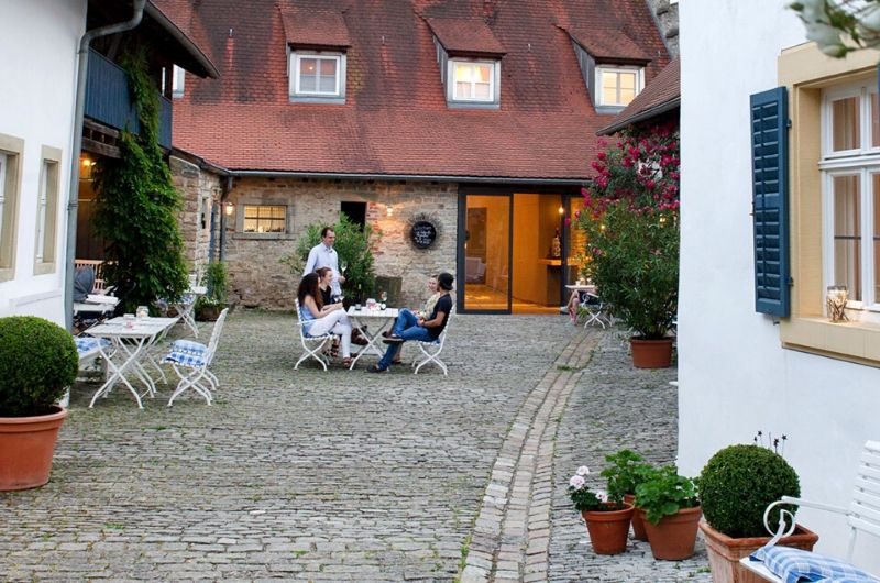 • den Innenhof und den Garten, wo ihr an lauschigen Sommerabenden Tonis Wein-Empfehlungen nachgeht während die Kids draußen herumtollen